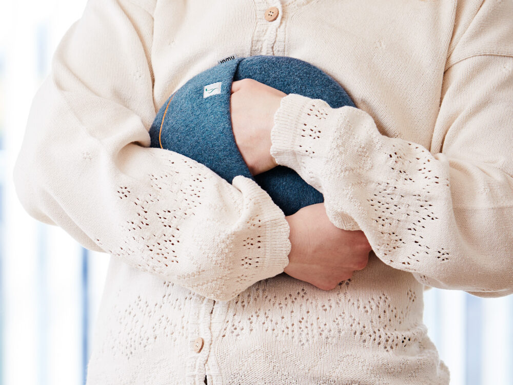 Music is used in a wide range of ways to relax, calm down and change mood. An inmuRELAX is a safe and soft object to hold and it promotes the feeling of safety combined with relaxing music that you can control yourself. You can put it away when you don’t like it anymore and the music stops. The tactile details and the soft vibrations make you feel your body.