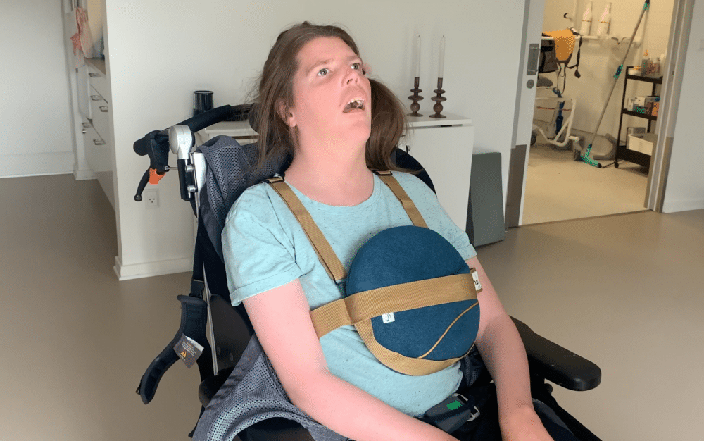 Linette, is a wheelchair user, has spasms and is very tense in her body. She has…