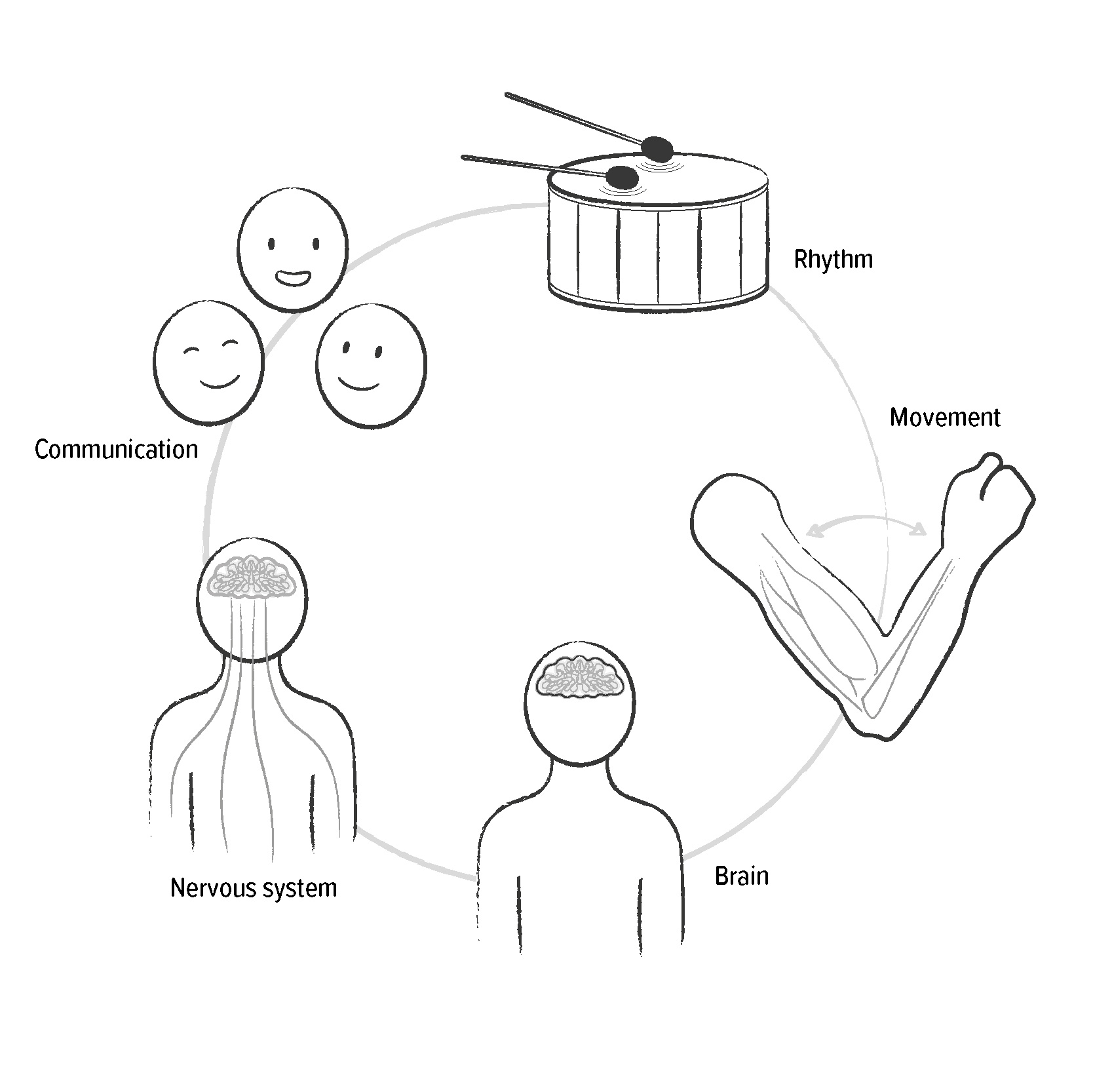 When we feel a rhythm, it gives us an impulse to move. Repetitive rhythmic movement creates structure and connects the brain and body. This is particularly important during rehabilitation, when muscles and nerve connections need to be rebuilt. The rhythmic movement of the body is essential for our sense of balance and for the coordination between the brain and the left and right sides of the body. The feeling of tension and relaxation in the muscles is also stimulated by repetitive rhythmic movement. With an inmuRHYTHM in your hands, you feel a steady, vibrating pulse. This increases your awareness of the motor movement you are performing.